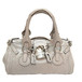 W37cmxH21cmxD20cm シルバーの カデナとおちついたアイスグレー色カーフの相性ぴったりなパデイントンバッグ! 両サイドベルト付、ファスナー開閉、内部ポケットx2。 クロエの高級ライン革