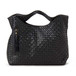 ■ボディの前後を編み込みメッシュで切り替え、ハンドルとボディの繋ぎ部分にギャザーでアクセントを添えたデザインレザーバッグ。マチ両サイドのアウトポケットや内ポケット付きで使い勝手もよく、着こなしにも映