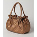 ■ボディの前後を編み込みメッシュで切り替え、ハンドルとボディの繋ぎ部分にギャザーでアクセントを添えたデザインレザーバッグ。マチ両サイドのアウトポケットや内ポケット付きで使い勝手もよく、着こなしにも映