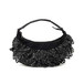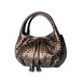 ■ハンドルと一体感のあるフォルムを羊革とフェイクレザーのコンビ使いに加え、スパンコール切り替えでインパクトのあるルックスに仕上げたバッグ。ジップ付きの開口部や使い勝手のいい内ポケットで機能性にもしっ